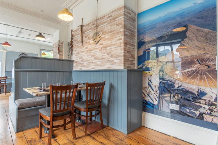 Our Bistro is spread over three uniquely themed rooms. Y Wyddfa Room, with views over the mountains. The Film Room, with posters of blockbuster movies that have been filmed in the Llanberis area and The Boat Room with views of the lake and a pirate ship for the children to play in.